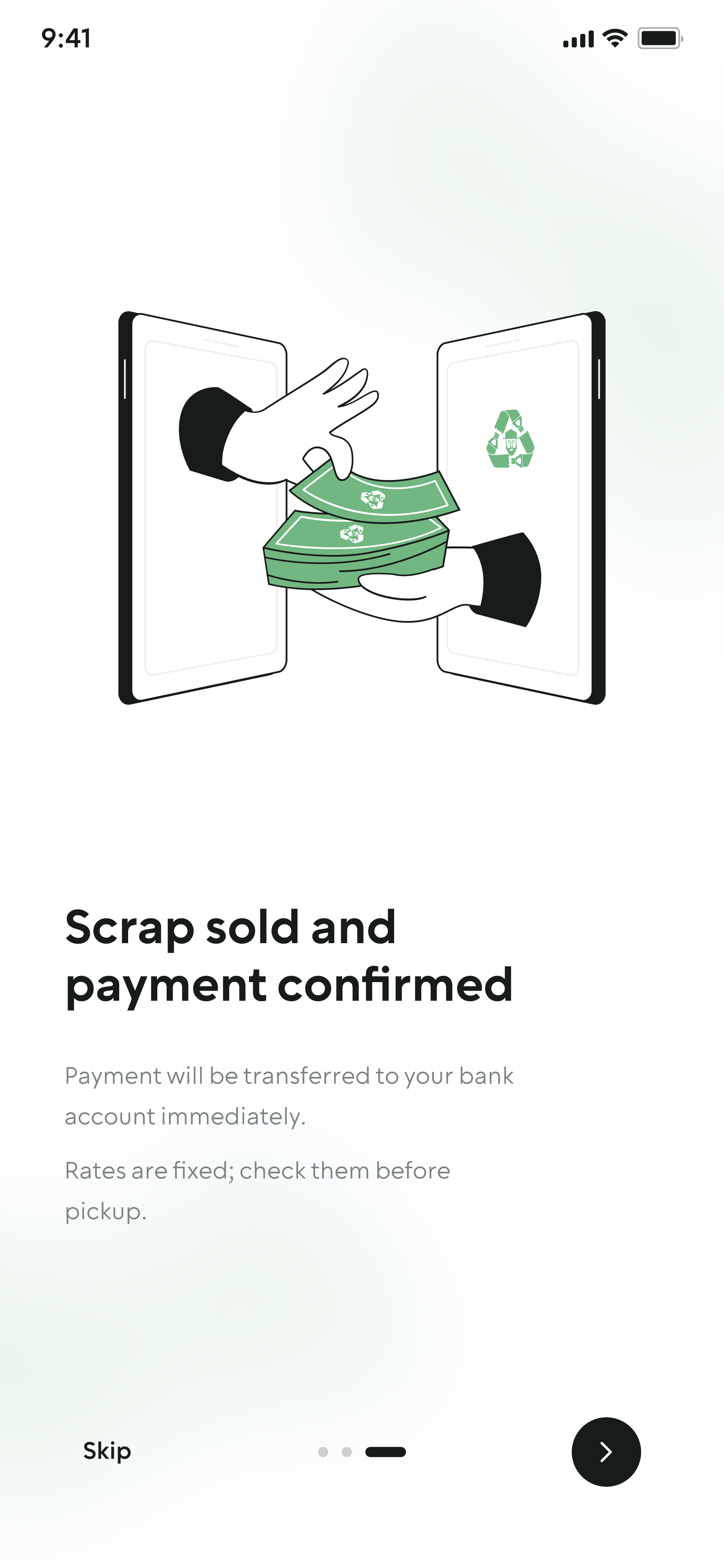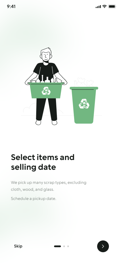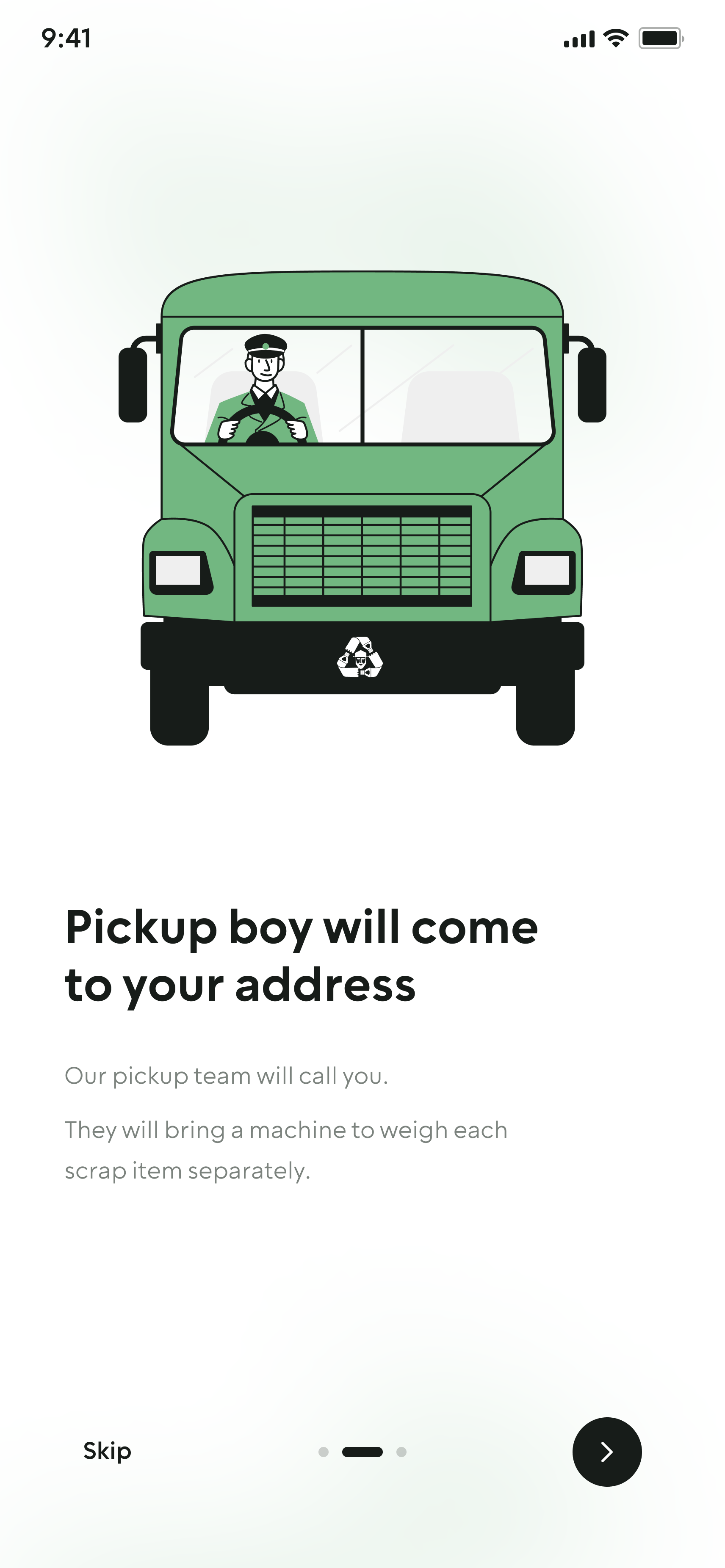 You can schedule through our app, We pick up many scrap types, excluding cloth, wood, and glass and many more.